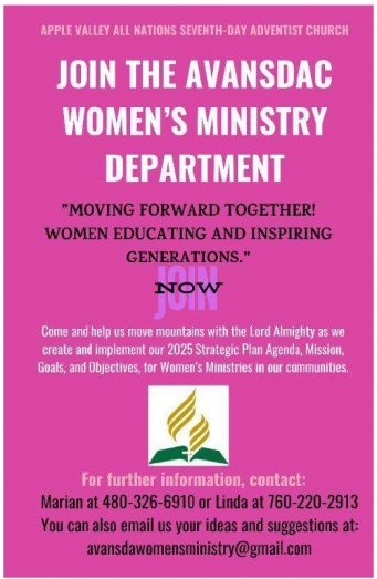AVANSDA Women's Ministry at the local level joins our General Conference Department to uphold, encourage and challenge Adventist women in their pilgrimage as disciples of Jesus Christ and members of His world church.
